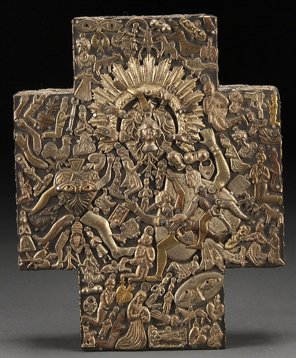 A MEXICAN MILAGRO CROSS STAMPED ESTELA OGAZON. 10.25 inches x 8.25 inches (26 x 21 cm).