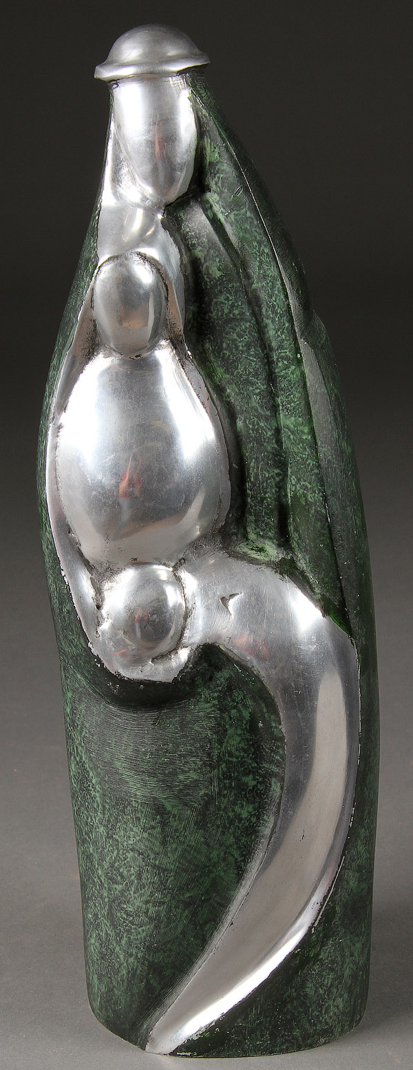 A MODERN ART DECO STYLE SCULPTURE OF THE HOLY FAMILY. Cast in aluminum with verdigras patina. Height 16 inches (40.7 cm).