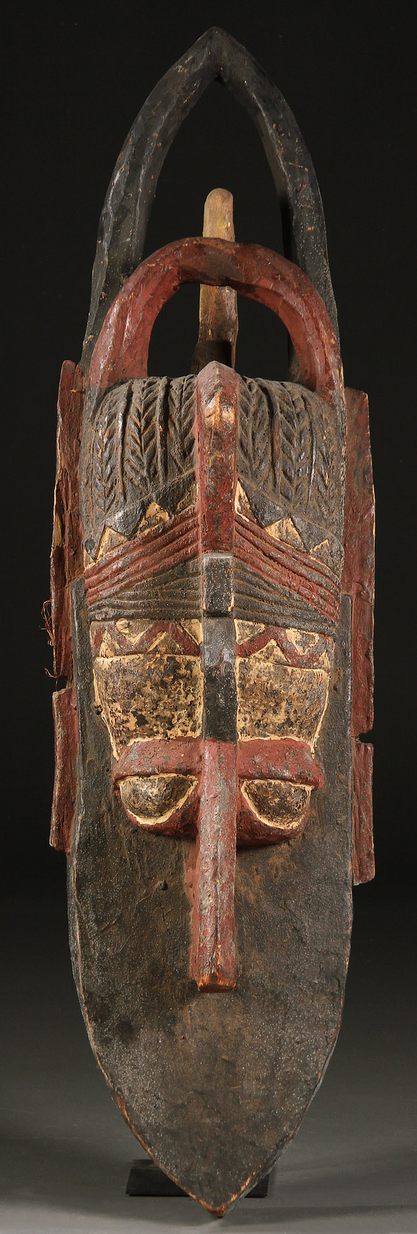 A LARGE CARVED WOOD AFRICAN MASK. In the Baga-style with polychroming. Height 52.5 inches (133 cm).