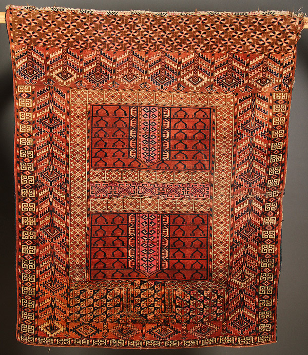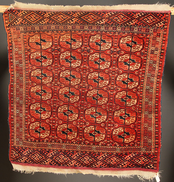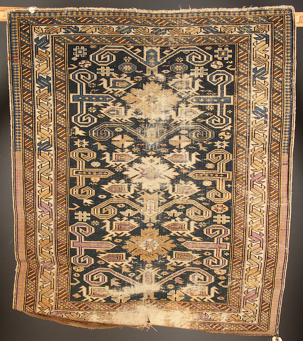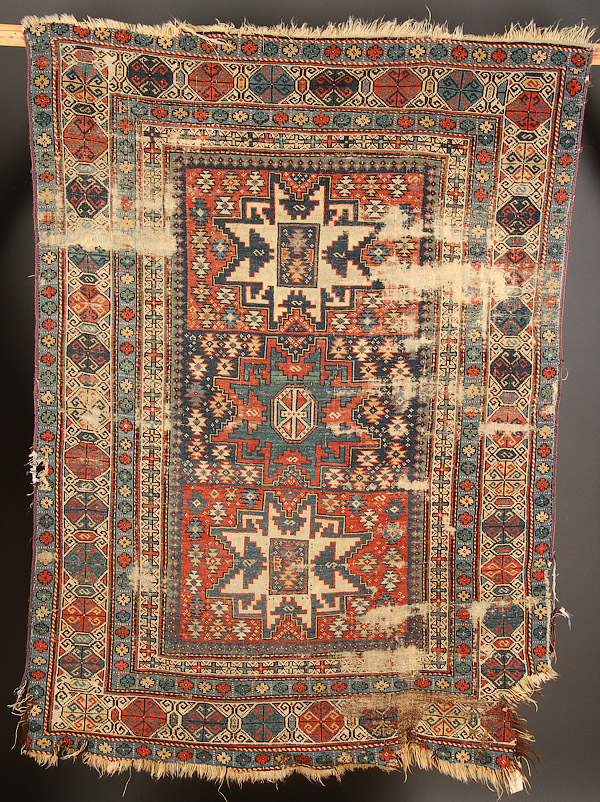 A GROUP OF FOUR HAND WOVEN ORIENTAL RUGS, EARLY 20TH CENTURY. Consisting of verious styles of geometric design, all with wear and some border loss. 40 inches x 38 inches to 64 inches x 47 inches (101.6 x 96.5 cm to 162.5 x 119.4 cm).