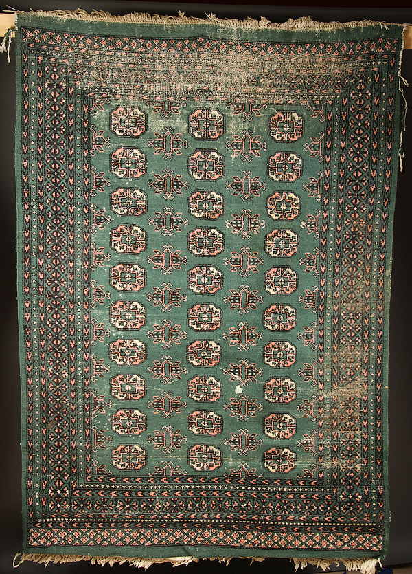 A PAIR OF CONTEMPORARY ORIENTAL RUGS, 20TH CENTURY. One with geometric design on a green ground, 91 inches x 61 inches (231.1 x 154.9 cm); together with a stylized design, 68 inches x 34 inches (172.7 x 86.3 cm).