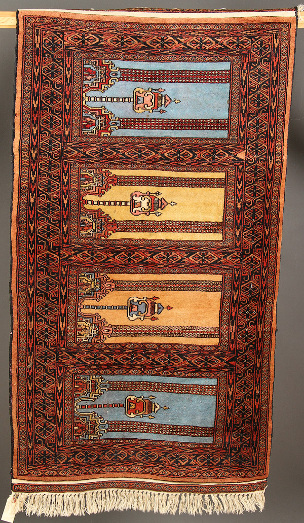 A GROUP OF FOUR ORIENTAL RUGS, 20TH CENTURY. With geometric and stylized designs. 32 inches x 24 inches to 56 inches x 31 inches (81.3 x 61 cm to 142.2 x 78.7 cm).