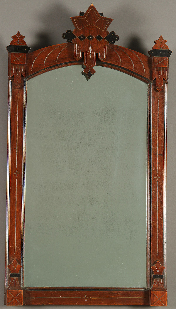 AN EASTLAKE STYLE VICTORIAN WALNUT DRESSER MIRROR. With incised decoration. Height 39 inches, width 21.75 inches (99 x 55.2 cm).