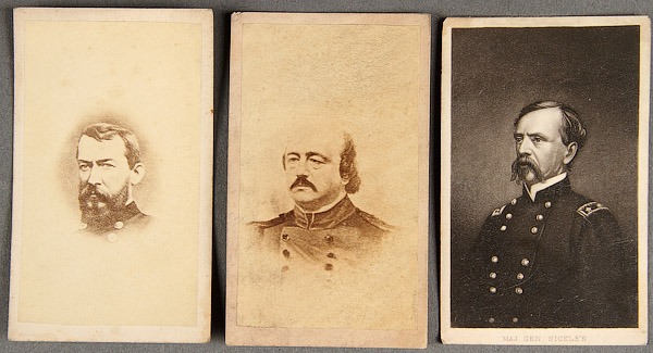 A CIVIL WAR CDV GROUP OF GENERAL OFFICERS. Comprising six images including a seated image of General Joe Hooker with photographer's backstamp of Gardner Washington D.C.; General Burnside, E & H.T. Anthony N.Y.; U.S. Grant, General Phil Sheridan, General Butler and a photogravure of Maj. Gen. Sickles.