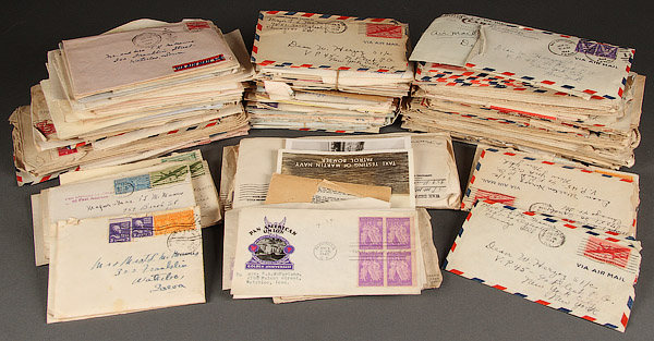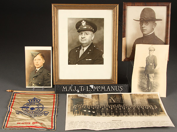 A US WWI/ WWII OFFICER'S GROUPING. Comprising photographs, certificates, documents and letters relating to the career of WWI and WWII officer, Major Thomas L. McManus, including letters, promotional certificates, theater photographs in uniform, desk name plaques and over 500 mostly war period letters corresponding with family members, including some material related to Eagle Squadron participant Dean Herzog.