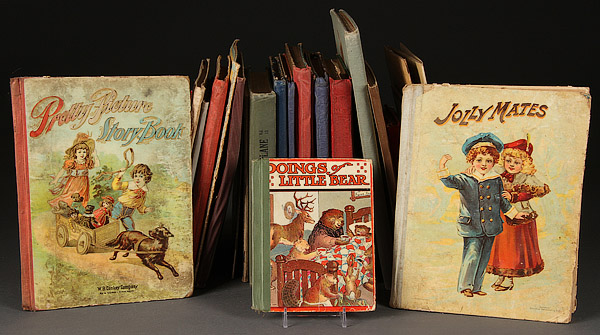 25 VINTAGE CHILDREN'S BOOKS, 19TH/20TH CENTURY. Including McLoughlin Bros 1883 "Wonderful Performing Dogs"; McLoughlin "The Yellow Dwarf"; Platt and Munch "The Little Engine That Could"; "Jack Jingling in Jungleland", 1918; "Robert and the Rainbow" by Mary Alice Jones with illustrations by L. Henderson; "Doings of Little Bear" by Margaret Fox, 1915; and others.