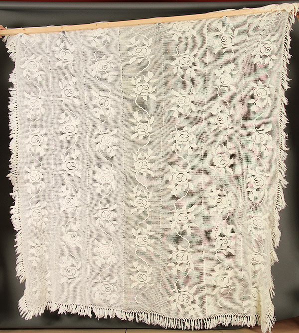A PAIR OF FINE TOBACCO TWINE HAND CROCHETED BED SPREADS, PROBABLY EARLY 20TH CENTURY. With bands of floral roses. 92 inches x 110 inches (233.5 x 279.5 cm).