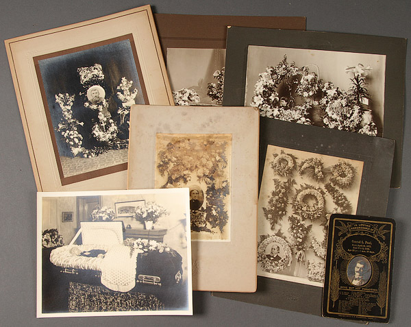17 MEMORIAL, POSTMORTEM AND FUNERARY RELATED PHOTOGRAPHS, 1ST QUARTER 19TH CENTURY. Including two 5 inch x 7 inch glass negatives of a postmortem baby. The majority mounted on studio cardstock with images up to 8 inches x 12 inches.