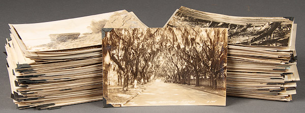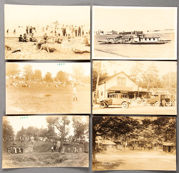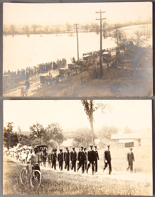 OVER 150 REAL PHOTO POSTCARDS, EARLY 20TH CENTURY. Including a fireman's funeral procession, probably Vermont; a Pennsylvania funeral procession, possibly Amish; a tourist camp in Grand Bend; four scenes with general store, cabins, miniature golf and beach; a Pickwick Damn ferryboat; variety of early Ontario, Canada scenics including baseball game, suspension bridges, national parks. Lot includes early snapshots, albumen prints and carte d'visites. Various conditions.
