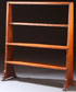 A VICTORIAN OAK COUNTRY STORE DISPLAY RACK. Containing four shelves of graduated depth, raised on tapering side panels. Height 46 inches (117 cm), width 40 inches (102 cm), depth 14.5 inches (37 cm).
