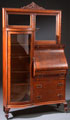 A VICTORIAN OAK SECRETARY BOOKCASE, CIRCA 1900. With drop front desk section and beveled glass mirror, flanked on the left with a curved glass vertical bookcase with five shelves. Height 75.5 inches (192 cm), width 42.25 inches (107 cm), depth 14 inches (36 cm).