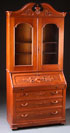 A VICTORIAN WALNUT SECRETARY, CIRCA 1880. With drop front desk section with three shelf book case top and applied scrolled carvings. Height 94 inches (244 cm), width 47.25 inches (120 cm), depth 20 inches (51 cm).