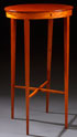 A SHERATON VIDE-POCHE (SMALL TABLE), LATE 18TH CENTURY. Mahogany and satin wood with a hinged oval locking top raised on four tapering legs. Height 30.5 inches (77 cm), width 17.5 inches (44.5 cm), depth 13.25 inches (33.5 cm).