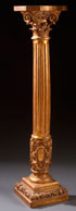 A PAIR OF CONTEMPORARY CAST PLASTER PEDESTALS. Gold pedestal height 43 inches (109 cm), 11 inches (28 cm) square. Black pedestal height 42 inches (106.75 cm), 9 inches (22.75 cm) square.