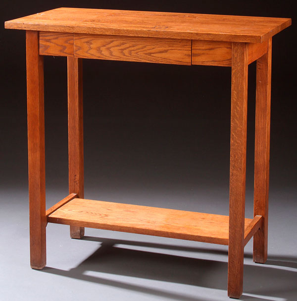 AN OAK TELEPHONE STAND, EARLY 20TH CENTURY. With single drawer. Height 30 inches (76 cm), length 30 inches (76.2 cm), depth 16 inches (40.5 cm).