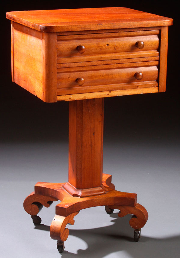 AN EMPIRE MAHOGANY TWO DRAWER WORK TABLE, EARLY 19TH CENTURY. Height 30 inches (76 cm), width 18 inches (46 cm), depth 15 inches (38 cm).