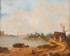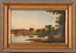 A GROUP OF FOUR 19TH CENTURY LANDSCAPE PAINTINGS, CIRCA 1840-1890. Comprising a European Lakeside Village Scene with Figures, oil on canvas, indistinguishably signed lower left and dated 1840, 12.5 inches x 15.5 inches; a Riverside Landscape, oil on artist board, unsigned, 6.25 inches x 10 inches; an Alpine Village Landscape with Figures, oil on canvas, inscribed on verso "painted by F.A.F. Wood-White" and dated Jan. 5, 1869, 7 inches x 9 inches; and together with a Naive Fall Landscape with Cattle Watering, oil on board, inscribed on verso "Painted by Aunt Lizzie Moore", 7.5 inches x 9.5 inches.