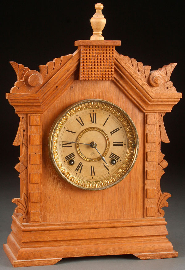 AN ANSONIA "TORONTO" SHELF CLOCK, LATE 19TH CENTURY. In a walnut case. Height 16 inches (40.5 cm),