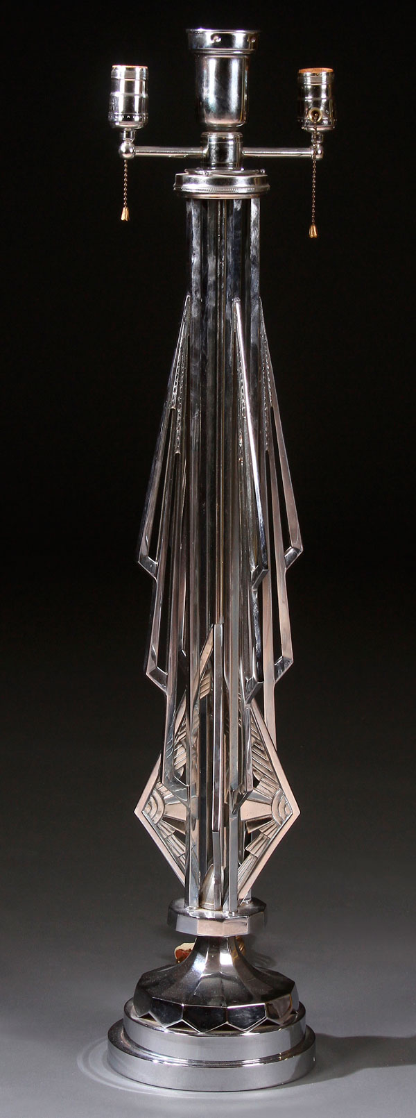 A CHROME ART DECO STYLE TABLE LAMP, 20TH CENTURY. Height 37 inches (94 cm).