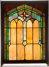 A STAINGLASS AND LEADED WINDOW PANEL, CIRCA 1915. Contained in a wood window frame. 35.5 inches x 26.5 inches (90 x 67 cm).