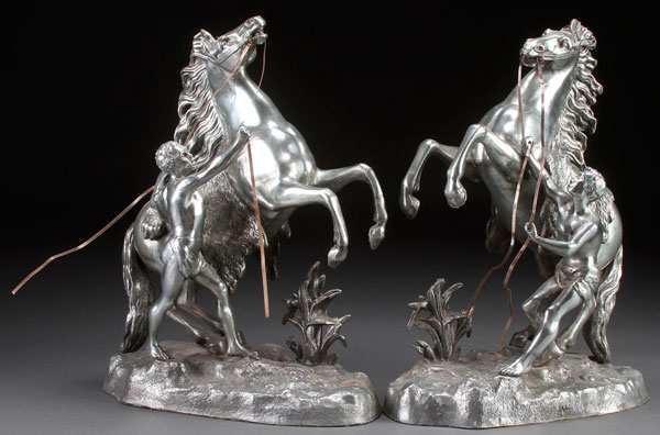 A PAIR OF ALUMINUM MARLEY HORSE SCULPTURES, CIRCA 1925. Height 15.75 inches.