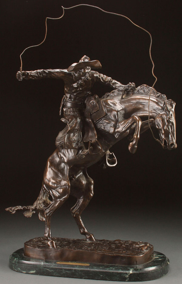 Inscribed on base "Frederic Remington" and title plaque "Bronco Buster"