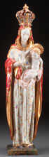 A PATTARINO GILT AND POLYCHROME CERAMIC FIGURE OF THE MADONNA AND CHILD. Signed on base Professor E. Pattarino. Some losses to crown. Height 21 inches