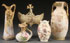 FOUR VERY FINE AUSTRIAN TEPLITZ AND RSTK CERAMIC VASES, CIRCA 1900. Comprising a handled porcelain vase with pierced neck and hand painted florals, a fine gilt decorated ewer with reticulated lattice design, an organic form handled basket, and an Art Nouveau jug with lily pad rim (losses), together with an ovoid form floral vase signed "Carlsbad." The largest 12.5 inches (32 cm).