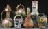 SIX PIECE GROUP OF AMPHORA AUSTRIAN ART POTTERY, CIRCA 1900. Including two Florina floral enameled handled vases, a scroll handled vase with enameled fruit clusters, two handled baskets, and a stylized floral bulbous case, all with various Amphora marks. The largest 13 inches (33 cm).