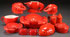NINE PIECE CZECH LOBSTER AND CRAB TABLESETTING, CIRCA 1930'S. Comprising six crustacean form covered dishes, a shrimp form creamer, a crab form salt and pepper, together with a red glazed cream jug and two shakers. The largest 8 inches long (20.3 cm).