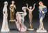 ROYAL DUX BOHEMIAN PORCELAIN FIGURES GROUP, 20TH CENTURY. Modeled as a girl with umbrella, a can-can dancer, an Art Deco semi-nude inscribed "Schalt," and a woman with mandolin (the latter two with some damage to bases), together with a standing nude figure by Wallendorf (E. Germany). The largest height 12.25 inches (31 cm).