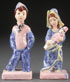 PAIR OF SUSIE SINGER CALIFORNIA ART POTTERY FIGURES, 20TH CENTURY. Modeled as a standing young boy and girl holding dollin variegated pink and blue glaze, inscribed on blue vase "SS 106" and "107." The largest 9.5 inches (24 cm).