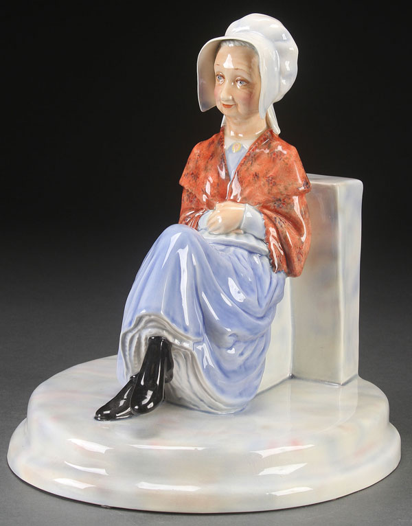 A RARE WILL-GEORGE "FLOWER SELLER" CALIFORNIA ART POTTERY FIGURE, MID 20TH CENTURY. Modeled as a seated woman with bonnet, the base stamped "Will-George, Pasadena." Height 12 inches (30.5 cm).