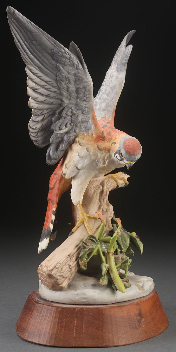 A LARGE CYBIS FIGURE OF A BIRD AND PREYING MANTIS, 20TH CENTURY Inscribed Cybis #60.