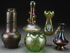 FIVE PIECE RINDSKOPF AND BOHEMIAN ART GLASS GROUP, EARLY 20TH CENTURY. Of various form and color including an amethyst shaded vase with applied snake, a handled amethyst ewer, a bulbous vase, a pinched form vase, and an enameled rose bowl, the largest 10.25 inches (26 cm)