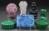 SIX PIECE GROUP OF CZECH MALACHITE AND EMBOSSED ART GLASS, 20TH CENTURY Including designs after Schlevogt, together with a white enameled black glass witchhazel bottle. The largest length 5.25 inches (13 cm).