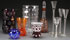 A SIX PIECE GROUP OF CZECH CUT GLASS, FIRST HALF 20TH CENTURY. Comprising a cut overlay decanter, a window cut overlay amethyst vase, a large optic cut crystal vase, and other items by Meltzer, Oertel, or Palda together with four air twist tall stemmed cordials and a latticino stemmed wine. The tallest 10.25 inches (26 cm).