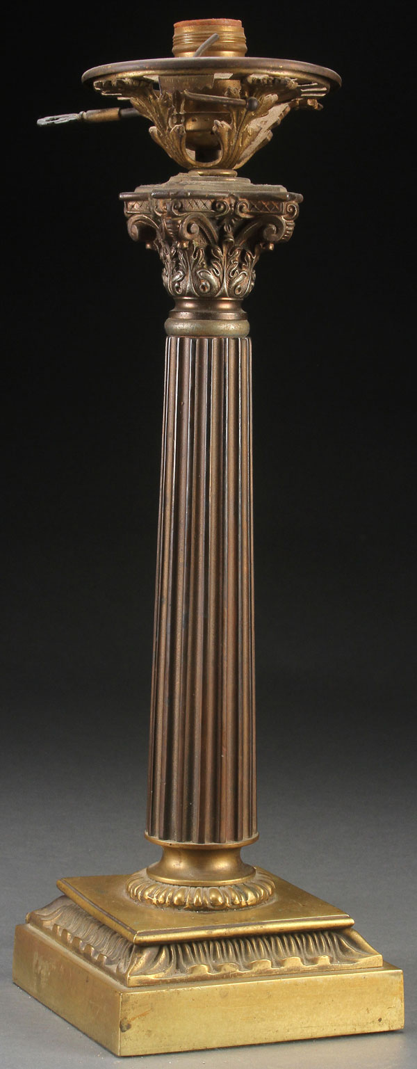 A FRENCH EMPIRE GILT BRONZE OIL LAMP BASE, 19TH CENTURY. Later converted to electric. Height 17 inches (43 cm).