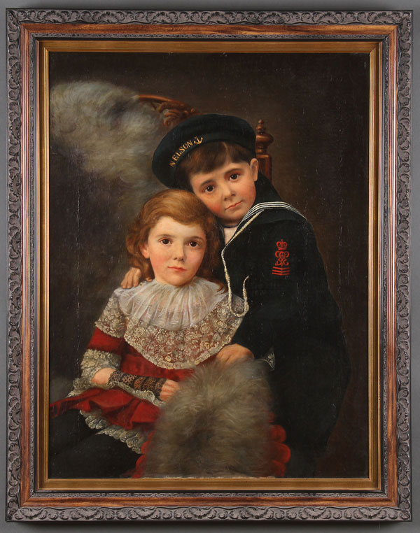 Portrait of Brother and Sister The boy in sailor uniform and HMS Nelson cap