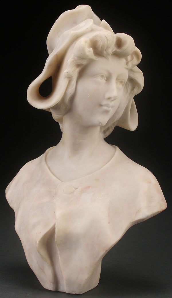A CONTINENTAL ART NOUVEAU CARVED MARBLE BUST, LATE 19TH/EARLY 20TH CENTURY. Depicting a young beauty. Apparently unsigned. Height 14 inches (36 cm).
