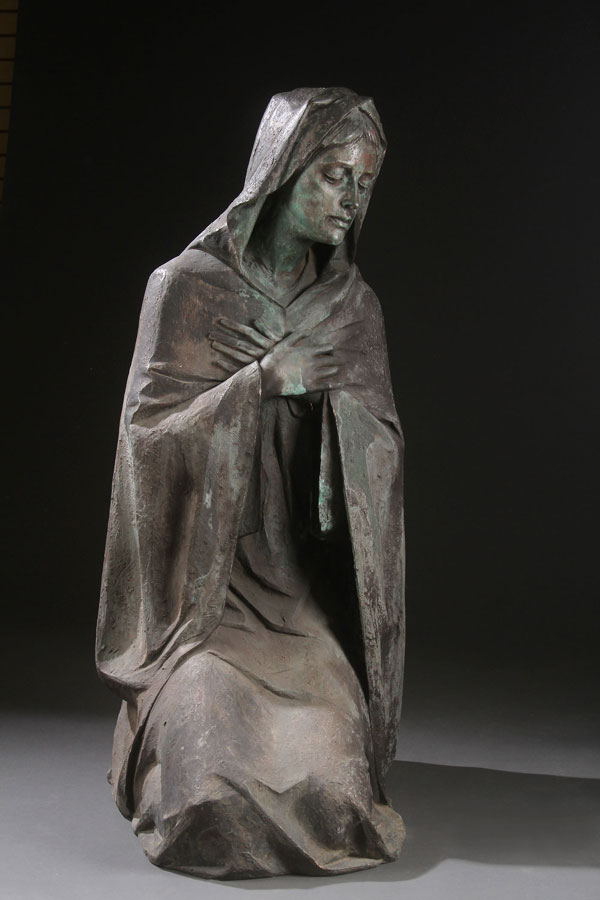 A LIFE-SIZE BRONZE GARDEN FIGURE OF THE PRAYERFUL MADONNA, EARLY 20TH CENTURY. Height 48 inches (122 cm).