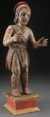 A SPANISH COLONIAL SANTO OF JOHN THE BAPTIST, 18TH OR 19TH CENTURY. Carved in full round of good proportions and retaining a good amount of the original polychrome. Set on a probably later polychrome and gilt-wood plinth. Height 19.5 inches (49.5 cm).