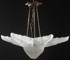A LARGE FRENCH ART DECO SATIN GLASS CHANDELIER, ATTRIBUTED TO SABINO, CIRCA 1925. With a hexagonal inverted dome shade, embossed with stylized florals, below six spreading palm shaped extensions, apparently unmarked. Length 28 inches (71 cm), width 36 inches (91.5 cm).