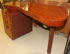 A GILBERT RHODE FOR HERMAN MILLER ART DECO PALDAO MAHOGANY DESK. Refinished with later naugahyde inner panel. Length 51 inches (130 cm).