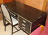 A NORMAN BEL GEDDES FOR SIMMONS PAINTED STEEL ART DECO WRITING DESK/VANITY AND CHAIR, CIRCA 1930'S. Length 43 inches (109 cm).