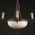 A STEUBEN ACID CUTBACK CALCITE GLASS HANGING CHANDELIER, EARLY 20TH CENTURY. Contained in a bronzed metal frame with fluted scrolled supports and scrolled candle holders with electric sockets. Diameter 14.5 inches (37 cm), overall width 24 inches (61 cm), height as illustrated 23 inches (58.5 cm).