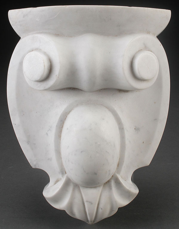 A CARVED MARBLE MANTLE PIECE KEY, 19TH CENTURY. Of ovoid shape with carved scroll and Foliate terminal. Later used as a wall bracket. Height 11.5 inches (29 cm).