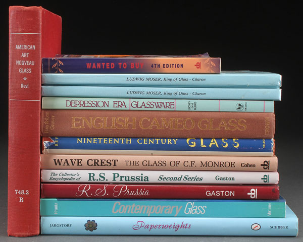 A TWELVE PIECE GROUP OF 19TH CENTURY ART GLASS REFERENCE BOOKS. Including "Nineteenth Century Glass, Its Genesis and Development" by Albert Christian Revi, "English Cameo Glass" by Ray and Lee Grover, "American Art Nouveau Glass" by Albert Christian Revi, and other various books.