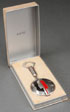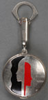A RICHARD HUDNUT FOR DEAUVILLE ART DECO COMPACT, CIRCA 1925. Of pendant form with enameled profiles suspended from a lipstick holder. Contained in the original fitted box. Length 5 inches (13 cm) and 6 inches (15 cm) in case.
